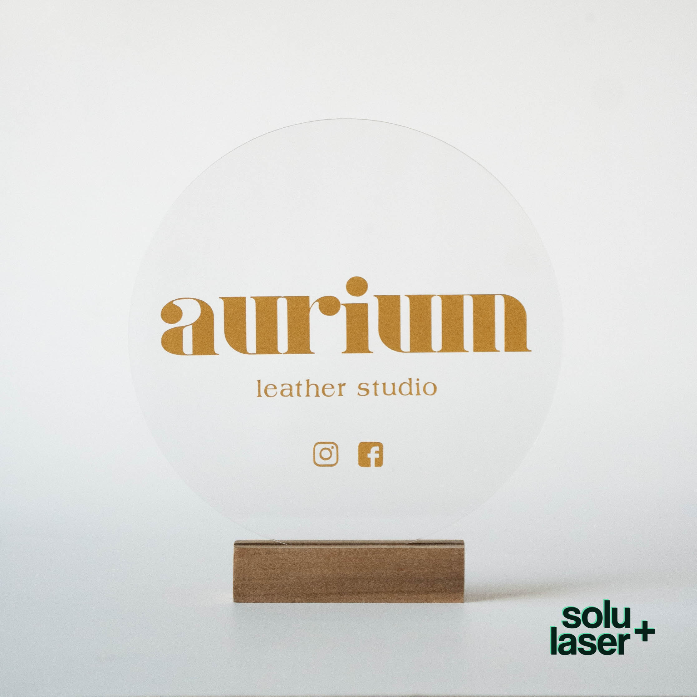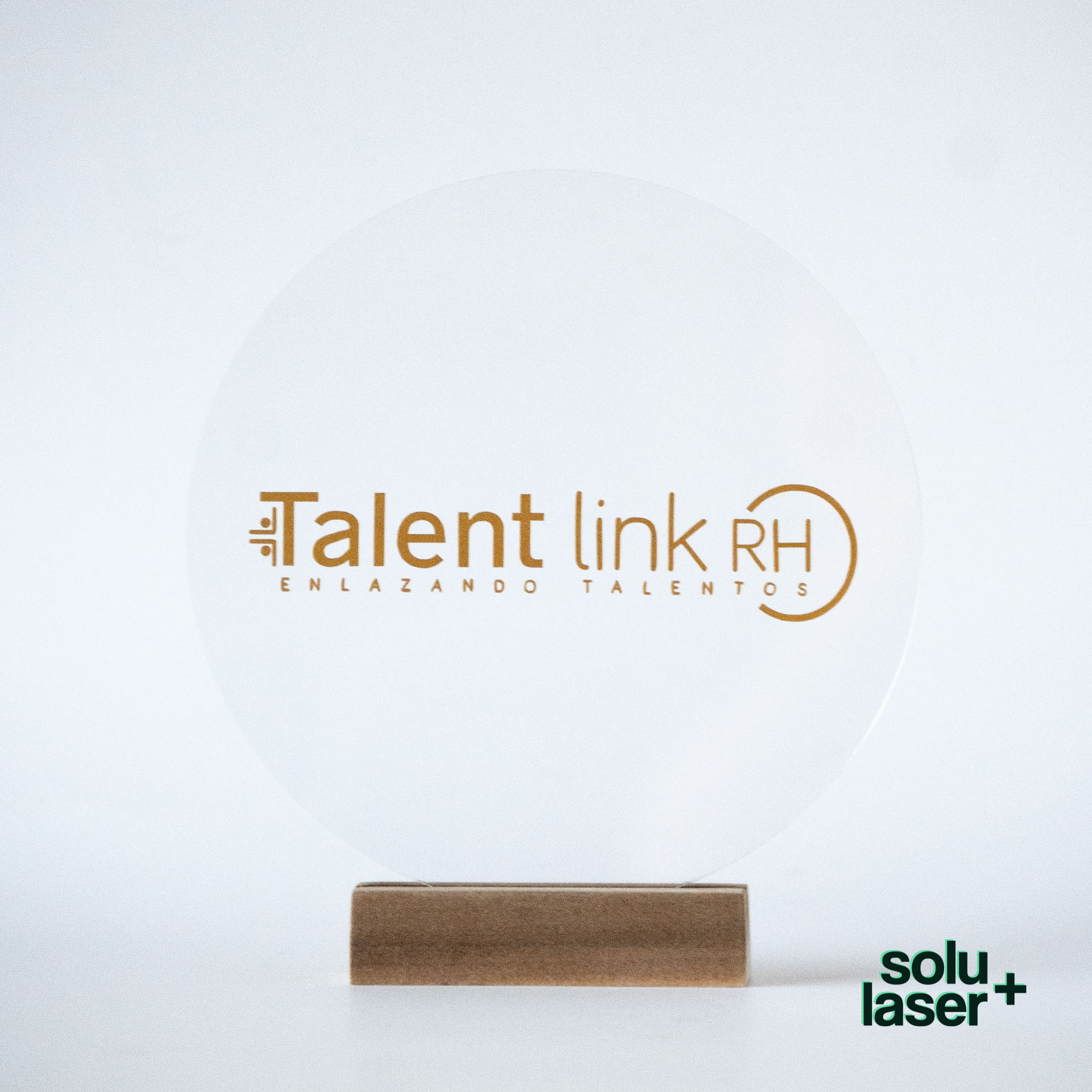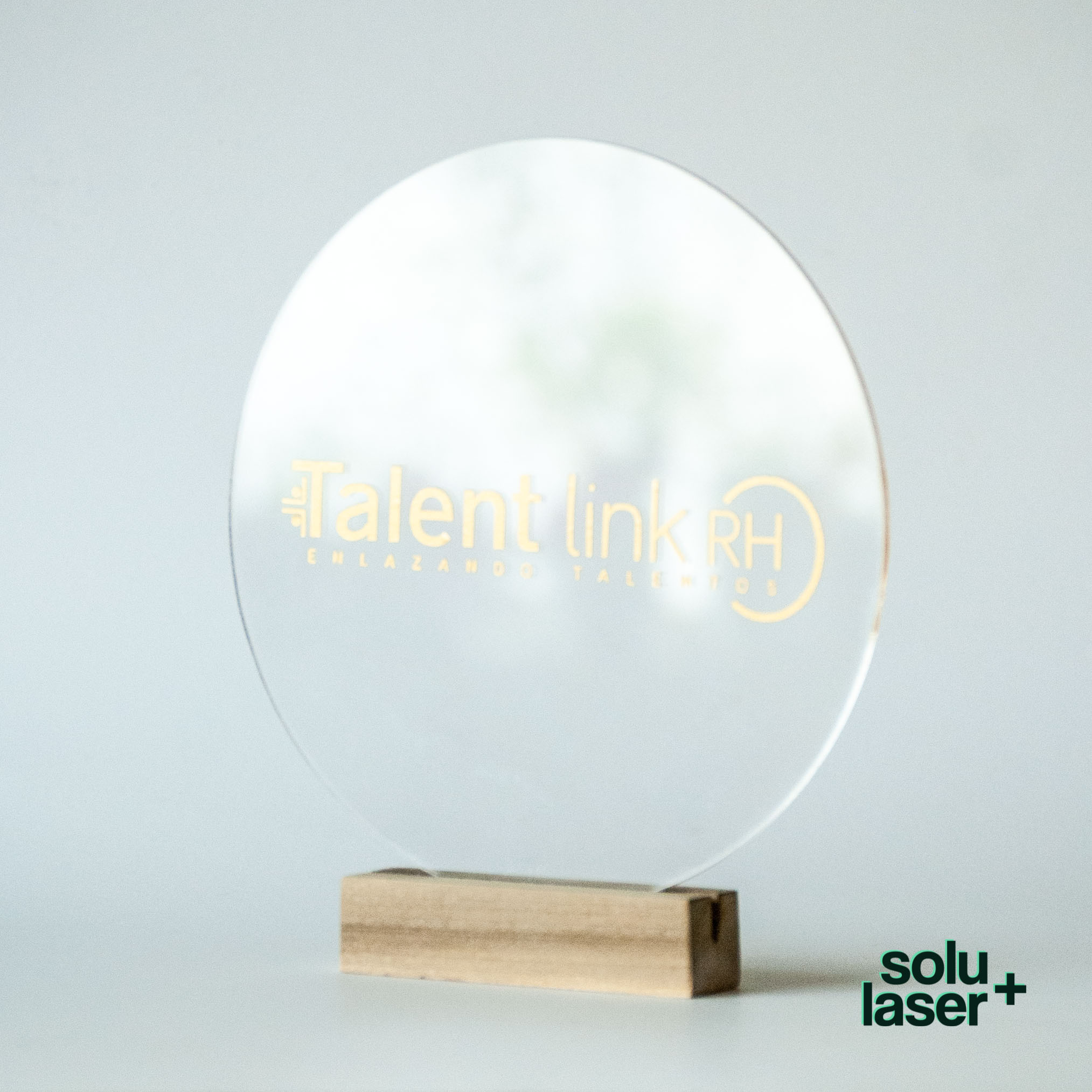 Letrero acrílico con base de madera.